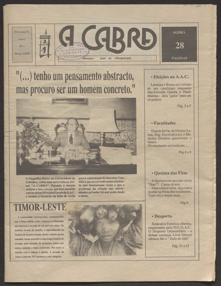 A cabra : jornal universitário de Coimbra - A. 1, n. 1 (fev. 1991)