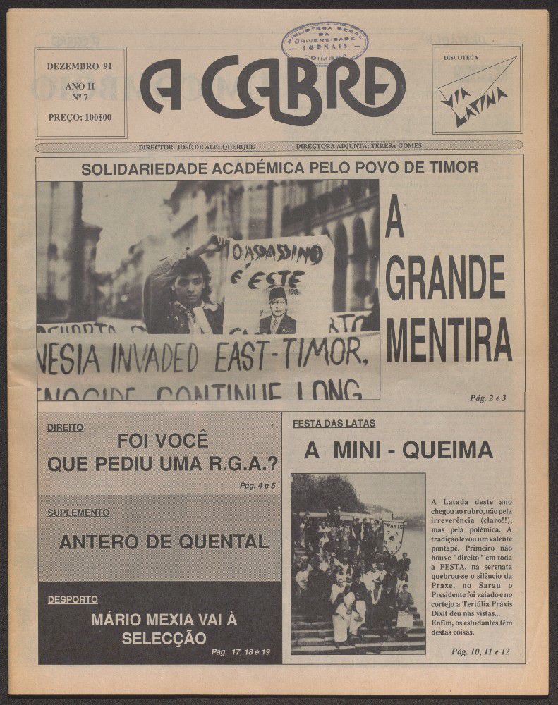 A cabra : jornal universitário de Coimbra - A. 2, n.º7 (dez. 1991)
