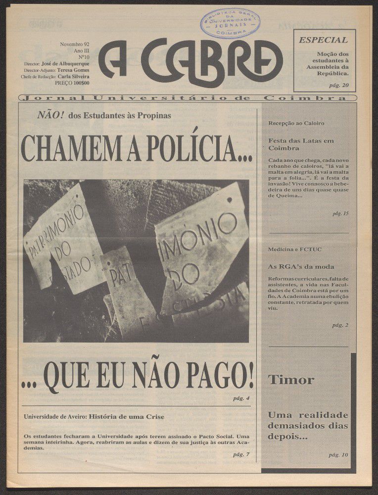 A cabra : jornal universitário de Coimbra - A. 3, n.º10 (nov. 1992)