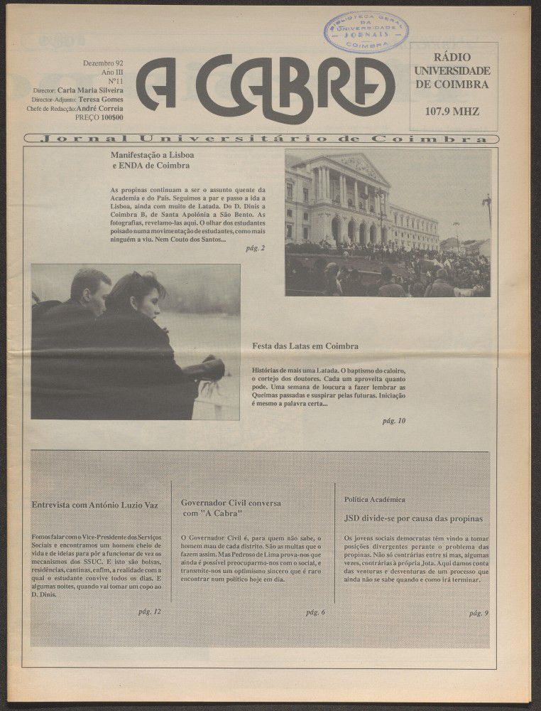 A cabra : jornal universitário de Coimbra - A. 3, n.º11 (dez. 1992)