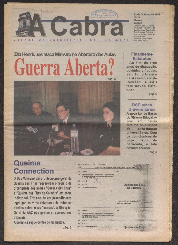 A cabra : jornal universitário de Coimbra - A. 6, n.º26 (out. 1996)