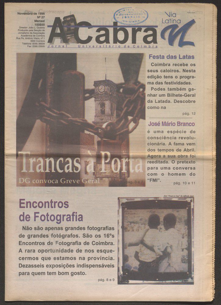 A cabra : jornal universitário de Coimbra - A. 6, n.º27 (nov. 1996)