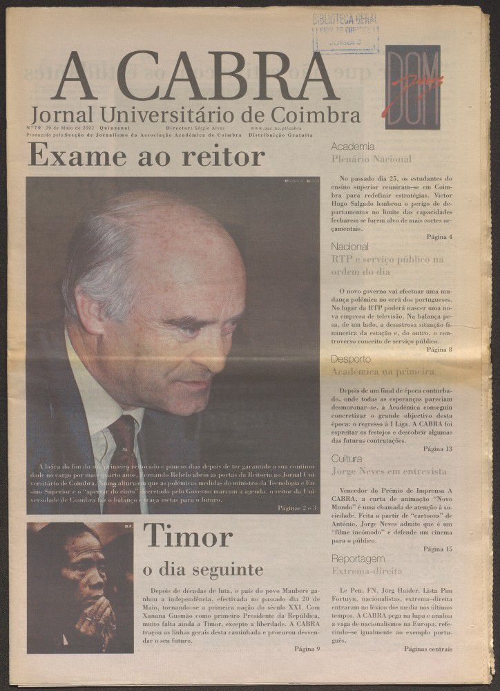 A cabra : jornal universitário de Coimbra - A. 12, n.º79 (mai. 2002)