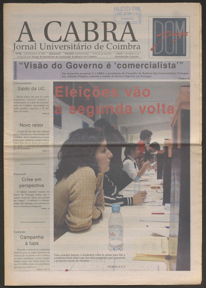 A cabra : jornal universitário de Coimbra - A. 12, n.º86 (dez. 2002)