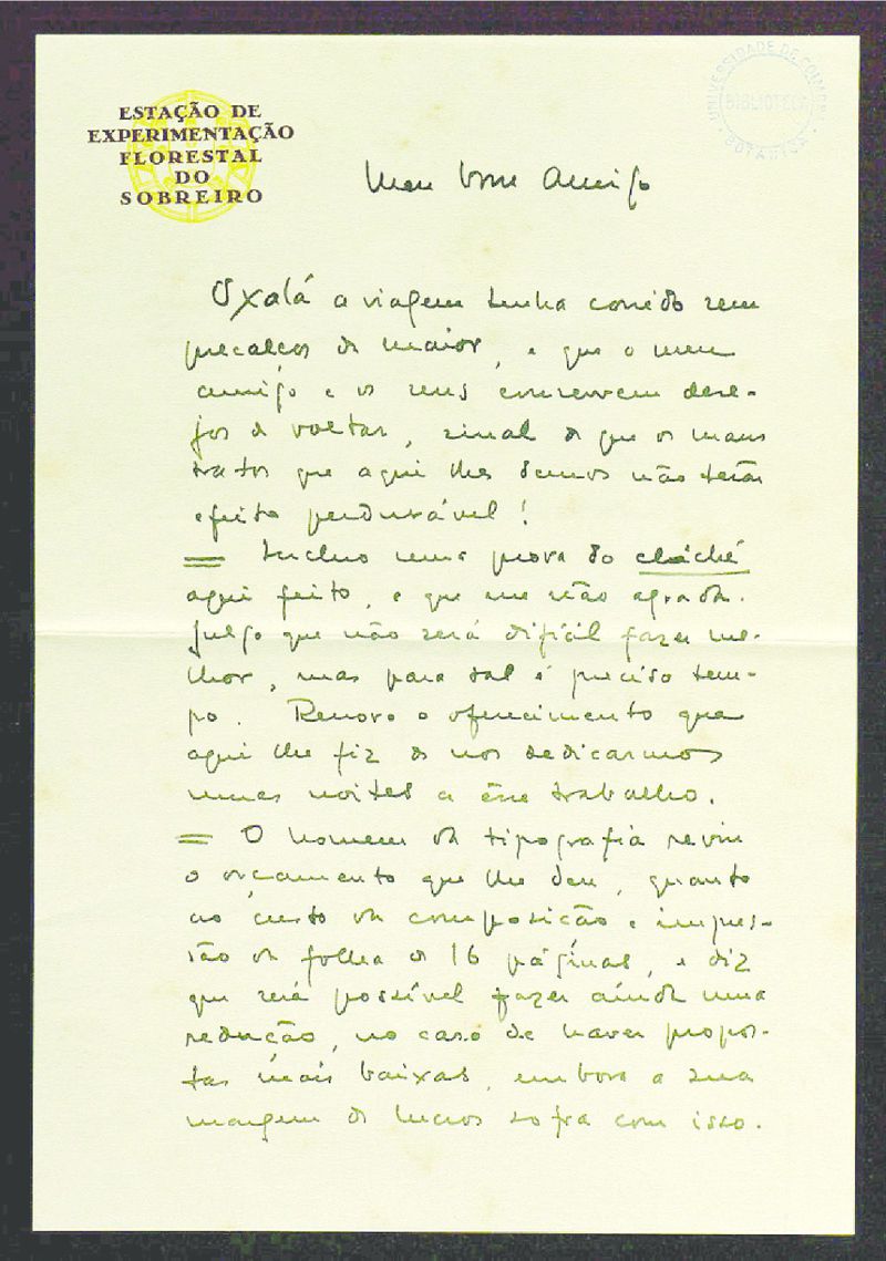 Papel timbrado de: Estação de Experimentação Florestal do Sobreiro.