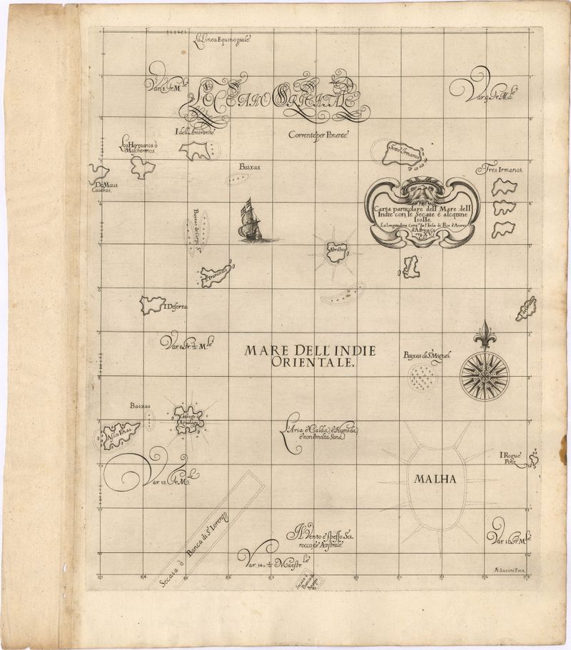 Carta particolare dell Mare dell Indie con le Secaie è alcqune Isolle : la longitudine Comincia da l'Isola di Pico d'Asores d'Affrica Carta. XV. Lº6º