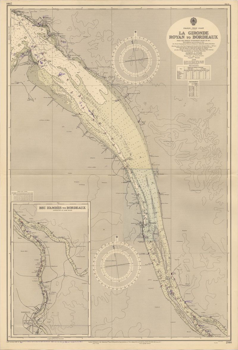 France : West Coast : La Gironde Royan to Bordeaux : from the french government chart of 1914 : with additions and corrections to 1954