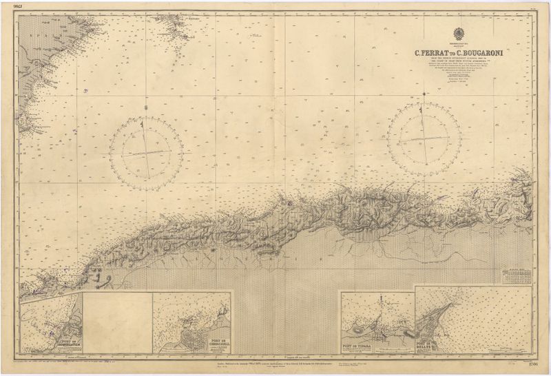 Encartes: Port de Cherchell, escala 1:15 968 ; Port de Tipasa, escala 1:20 114 ; Port de Dellys, escala 16 182.
