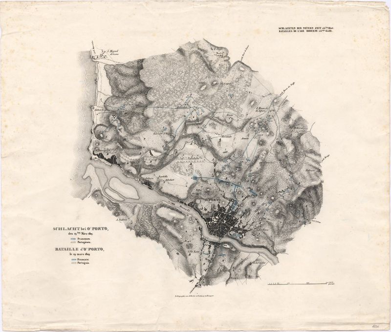 Schlachten der neurn Zeit 155.tes Blatt : Schlacht bei OṔorto den 29ten. März 1809 = Batailles de L'Age Moderne 155me. feuille : Bataille d'O'Porto de 29 mars 1809.