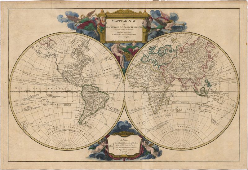Mappemonde ou description du Globe Terrestre dressée sur les mémoires les plus nouveaux, et assujettie aux observations astronomiques