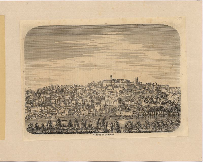 No verso tem um texto descritivo da cidade de Coimbra por I. de Vilhena Barbosa.