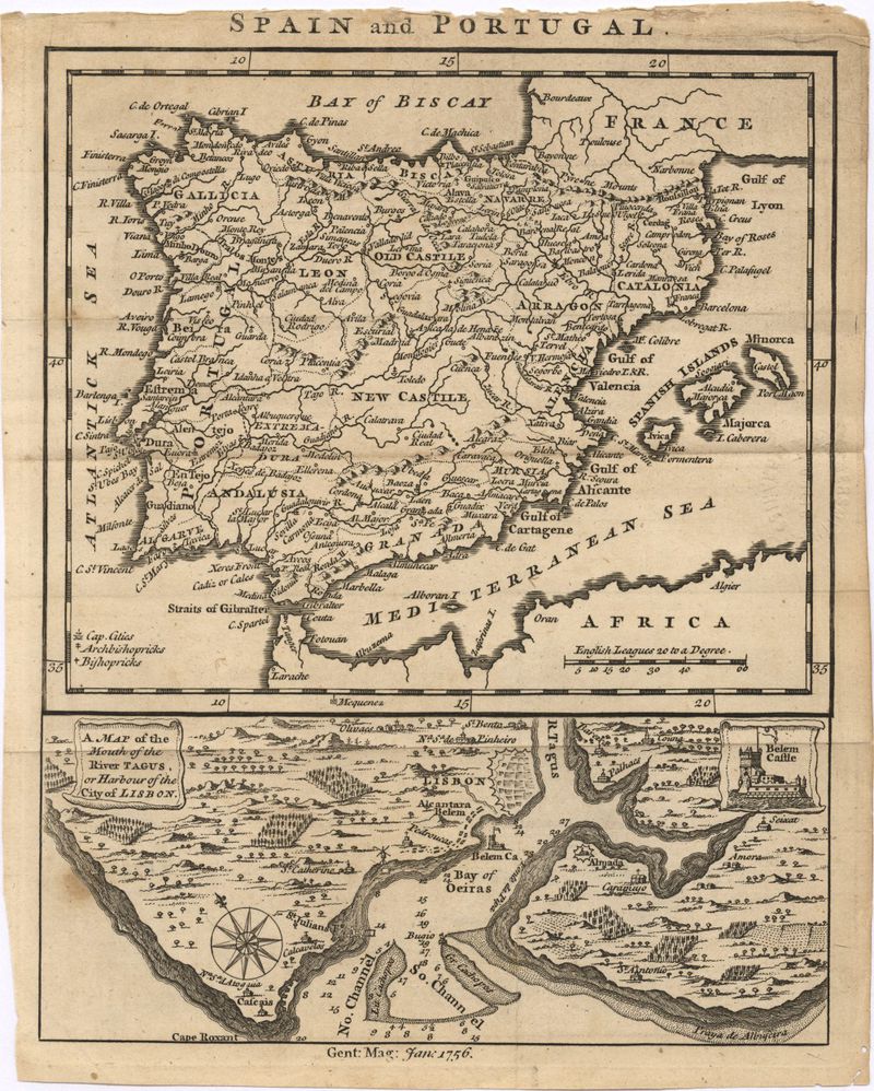Contém o mapa da Península Ibérica e mapa do porto de Lisboa, com desenho da Torre de Belém.
