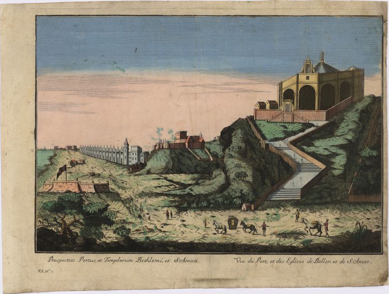 Prospectus Portus, et Templorum Bethlemi, et S. Amati = Vue du Port, et des Eglises de Bellen et de S. Amat