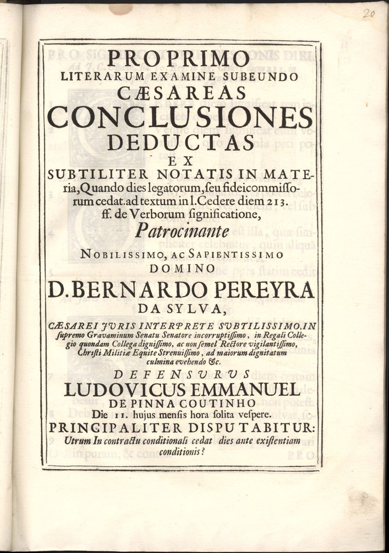 Pro primo literarum examine subeundo cæsareas conclusiones deductas : ex subtiliter notatis in materia, quando dies legatorum, seu fideicomissorum cedat. ad textum in l. cedere diem 213. ff. de verborum significatione : principaliter disputabitur : utrum in contractu conditionali cedat dies ante existentiam conditionis?