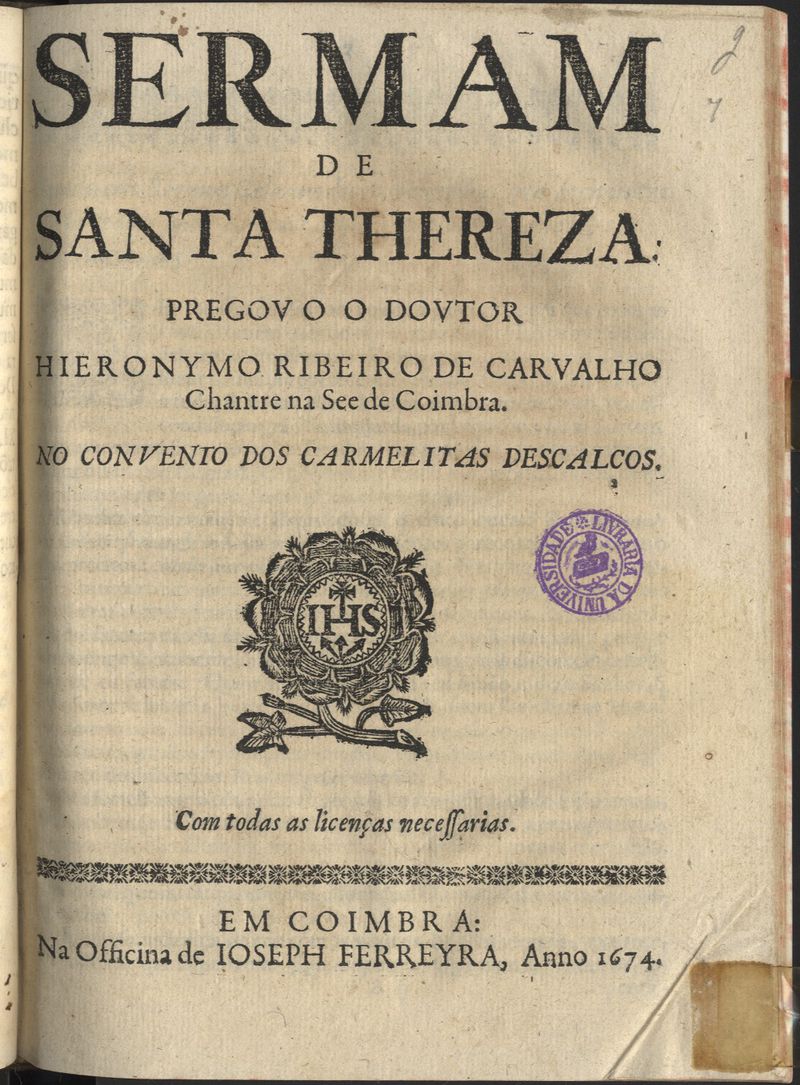 Em Coimbra : Na officina de Ioseph Ferreyra, 1674