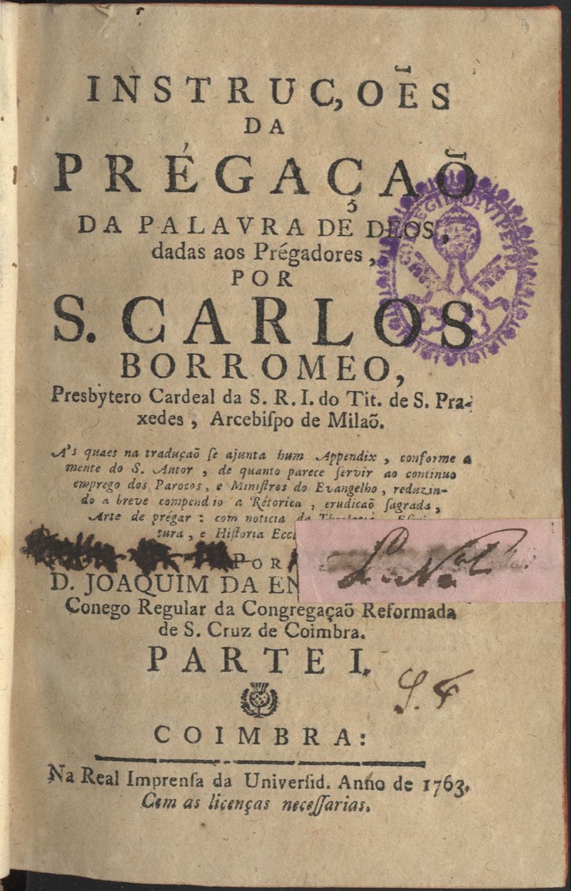 Instruções da prégaçaõ da palavra de Deos dadas aos prégadores por S. Carlos Borromeo ... Arcebispo de Milão : ás quaes na traduçaõ se ajunta hum Appendix, conforme a mente do S. autor ...