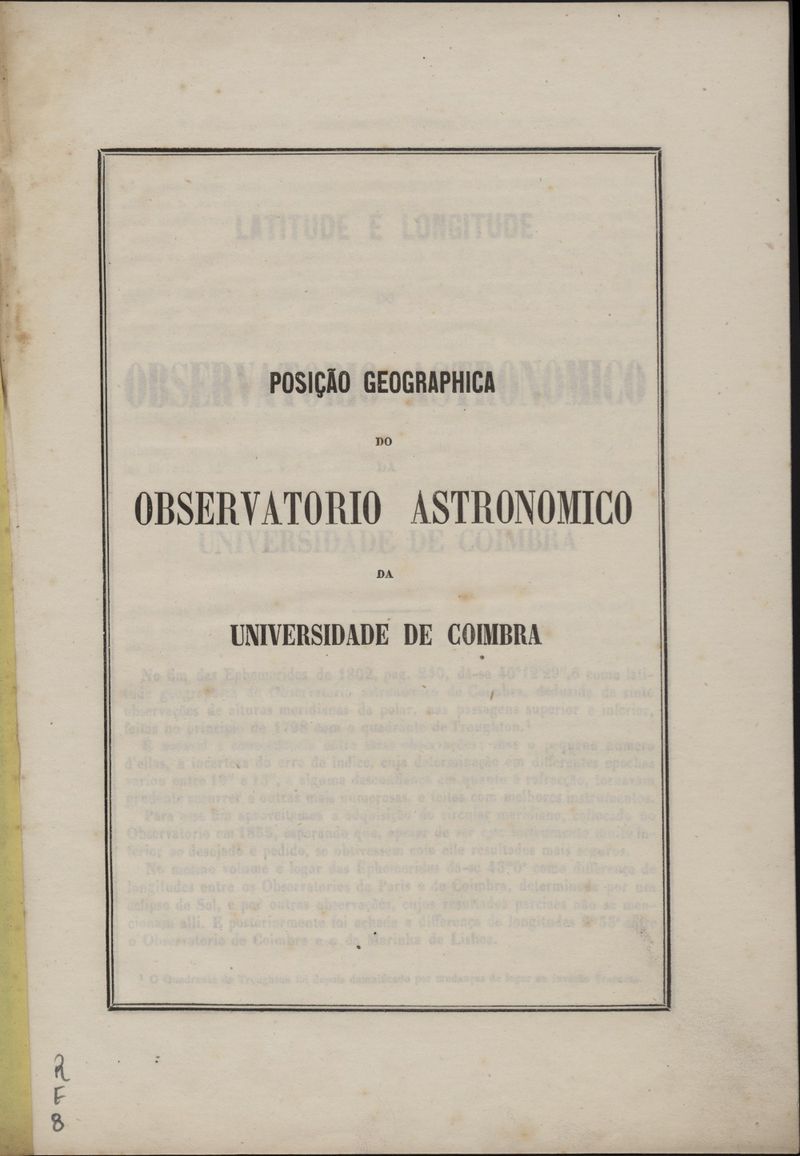 Posição geographica do Observatório Astronómico da Universidade de Coimbra
