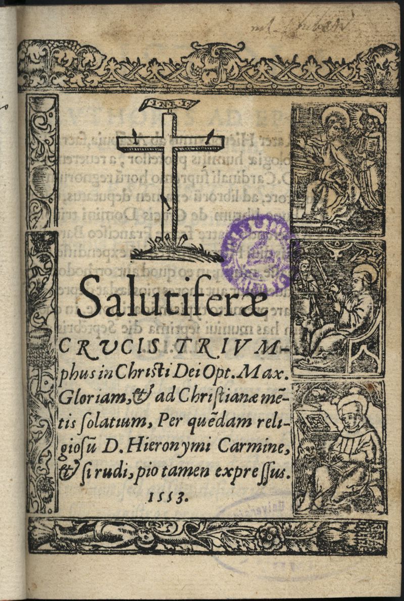 Salutiferae crucis triumphus in Christi Dei Opt. Max. gloriam et ad christianae me[n]tis solatium per que[n]dam religiosu[m] D. Hieronymi carmine et si rudi pio tamen expressus
