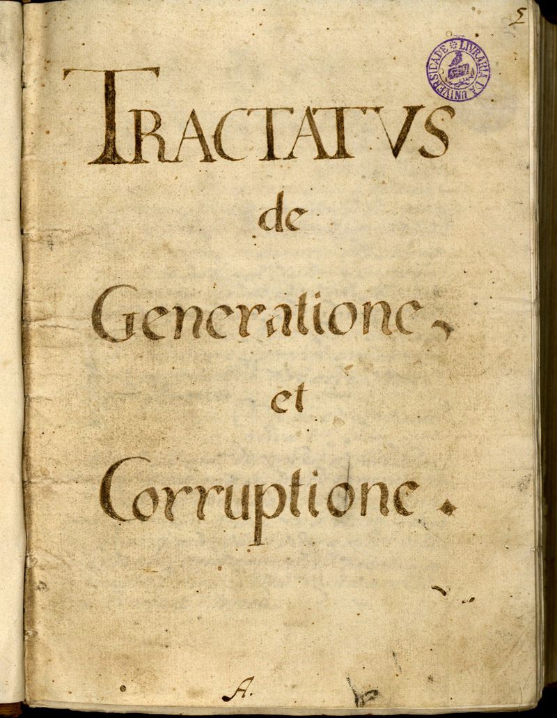 Trata-se da transcrição das lições dadas pelo P. André Viana, da Companhia de Jesus, na Academia do Colégio Conimbricense, compiladas por António de Sousa em 1686, feita e assinada por Bartolomeu de Miranda Barreiros, terminada a de 4 de Dezembro d