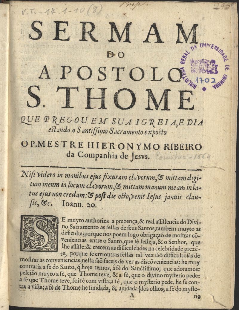 Aparado. - Picos de insectos. - Pert.: Visconde da Trindade. - Enc. com obras do mesmo tipo. - Enc. em pele com o super-libros do Visconde da Trindade grav. a ferros dourados em ambas as pastas, lombada grav. a ferros dourados.