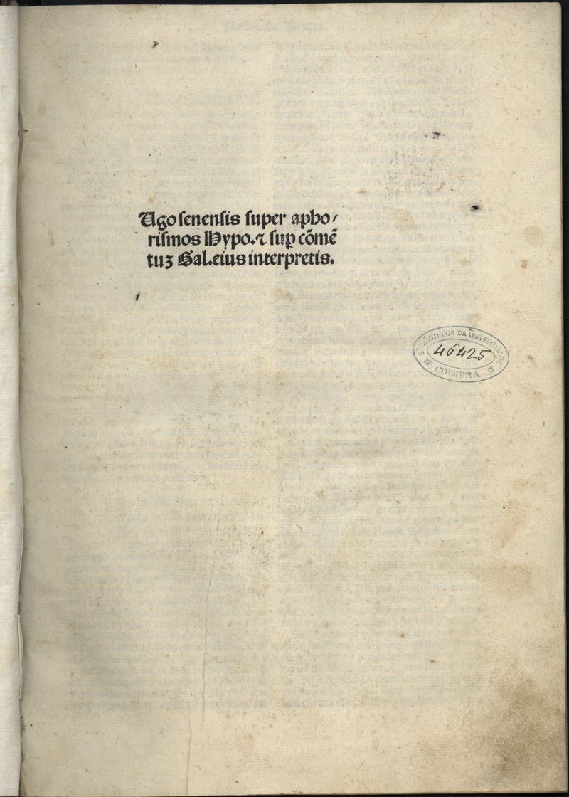 Ugo Senensis Super aphorismos Hypo. y sup[er] cometuz Gal. eius interpretis