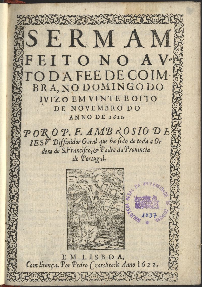 Referenciado em: Cassuto, A. Bibliogr. sermões autos da fé, Coimbra 5