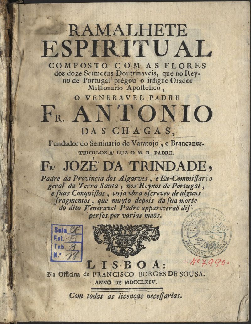 Ramalhete espiritual composto com as flores dos doze sermões doutrinaveis...padre Fr. Antonio das Chagas... tirou-os á luz ...Fr. Jozé da Trinidade