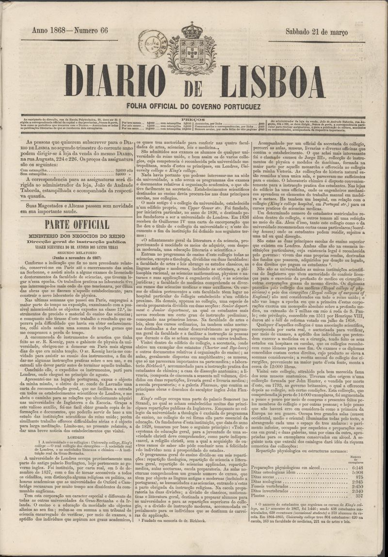 Diario de Lisboa. Lisboa. Nº 66 (21 Mar. 1868), p. 553-559.