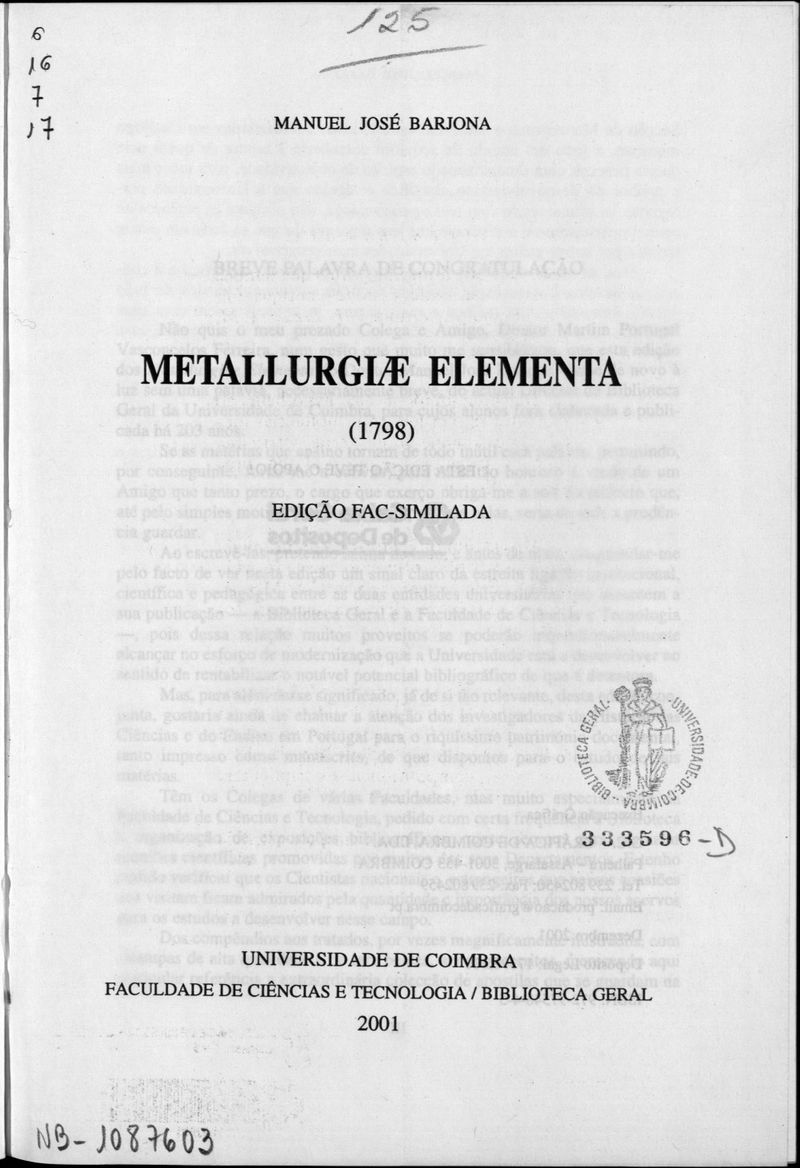 Edição que contém a versão portuguesa intitulada "Elementos de metalurgia" traduzida por Isaltina Martins e revista por Martim Portugal V. Ferreira