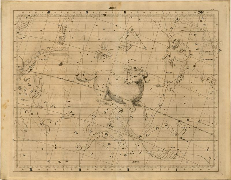 Contem a constelação Aries e estrelas das constelações Taurus, Andromeda, Pisces e Cetus.