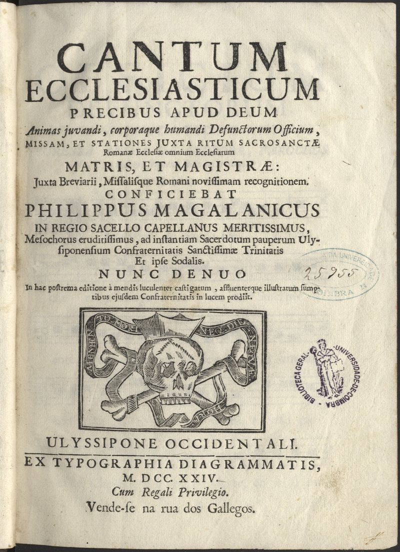 Cantum ecclesiasticum precibus apud Deum animas juvandi, corporaque humandi Defunctorum Officium, missam et stationes juxta ritum Sacrosanctae Romanae ecclesiae omnium ecclesiarum Matris et Magistrae, juxta Breviarii, Missalisque Romani novissimam recogni