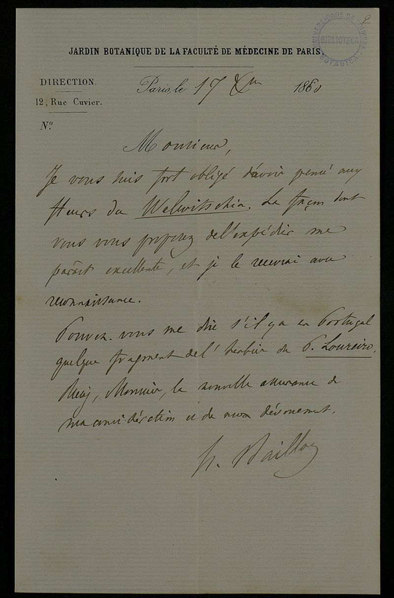 [Lettre], 1880 déc. 17, Paris, [à Júlio Henriques, Coimbra]