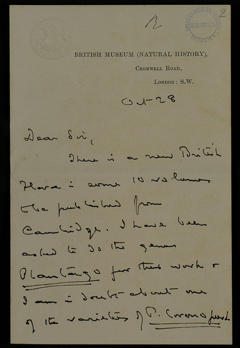 [Letter], 1895 Oct. 28, Londres, [to Júlio Henriques, Coimbra]