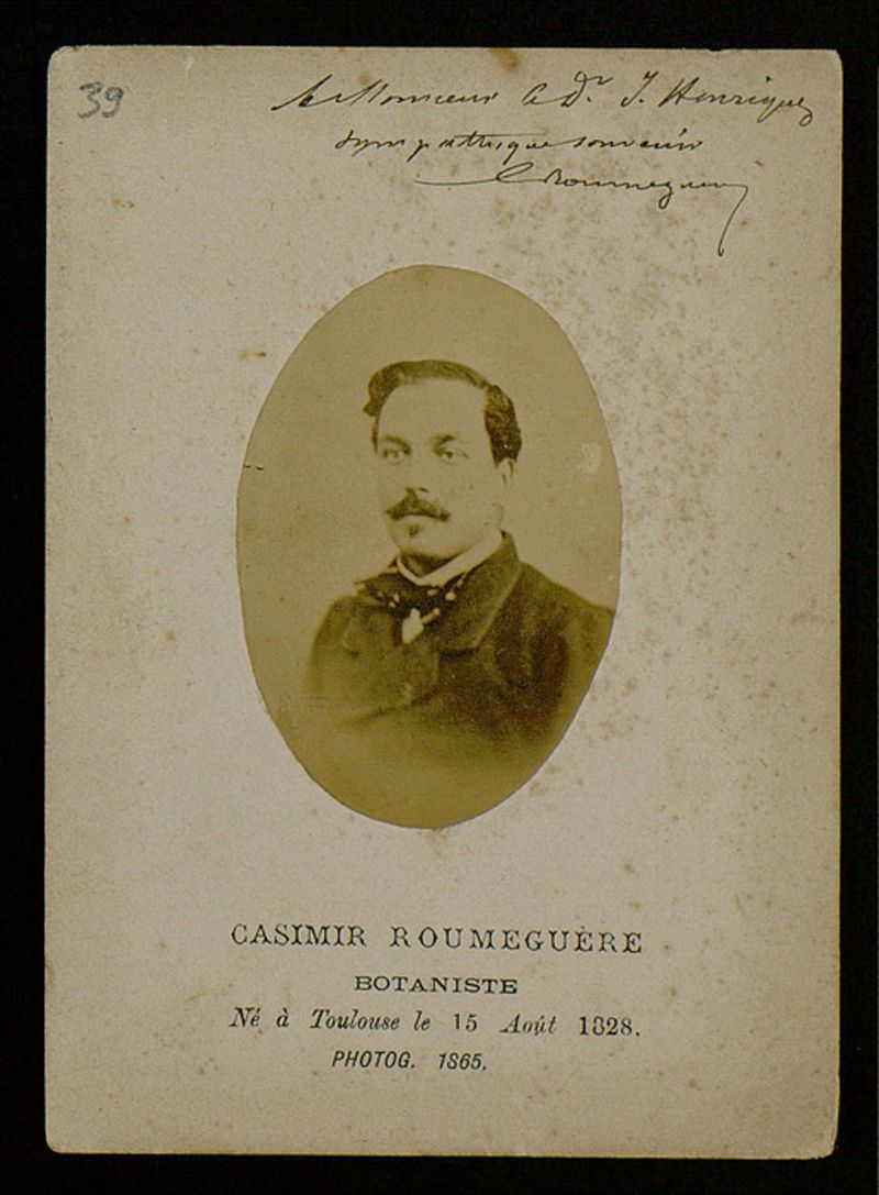 Dedicatória ms., ass., do botanico Casimir Roumeguere a Julio Henriques.