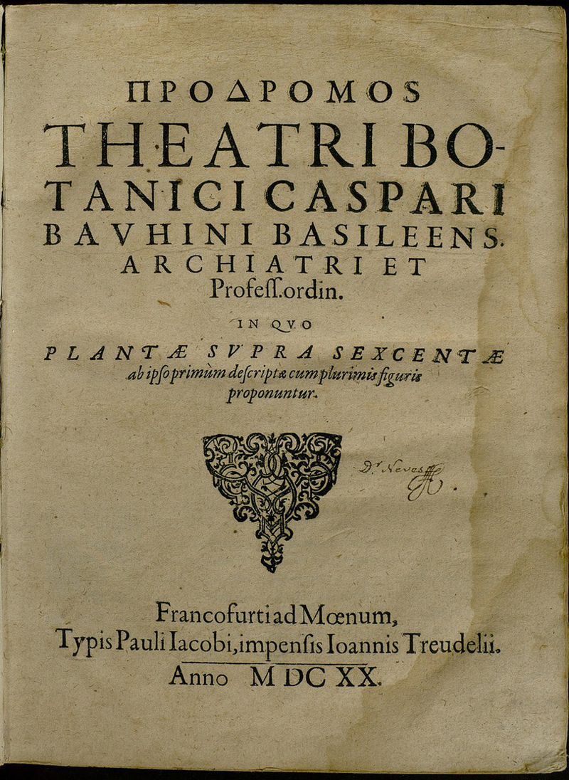 Prodromos theatri botanici Caspari Bauhini Basileens. Archiatri et Profess. ordin. in quo plantae supra sexcentae ab ipso primum descriptae cum plurimis figuris proponuntur