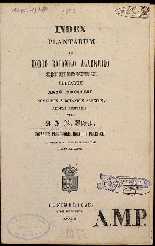 Index Plantarum in Horto Botanico Academico Conimbrigensi cultarum Anno MDCCCLII Nominibus a Botanicis Sancitis, Additis Lusitanis