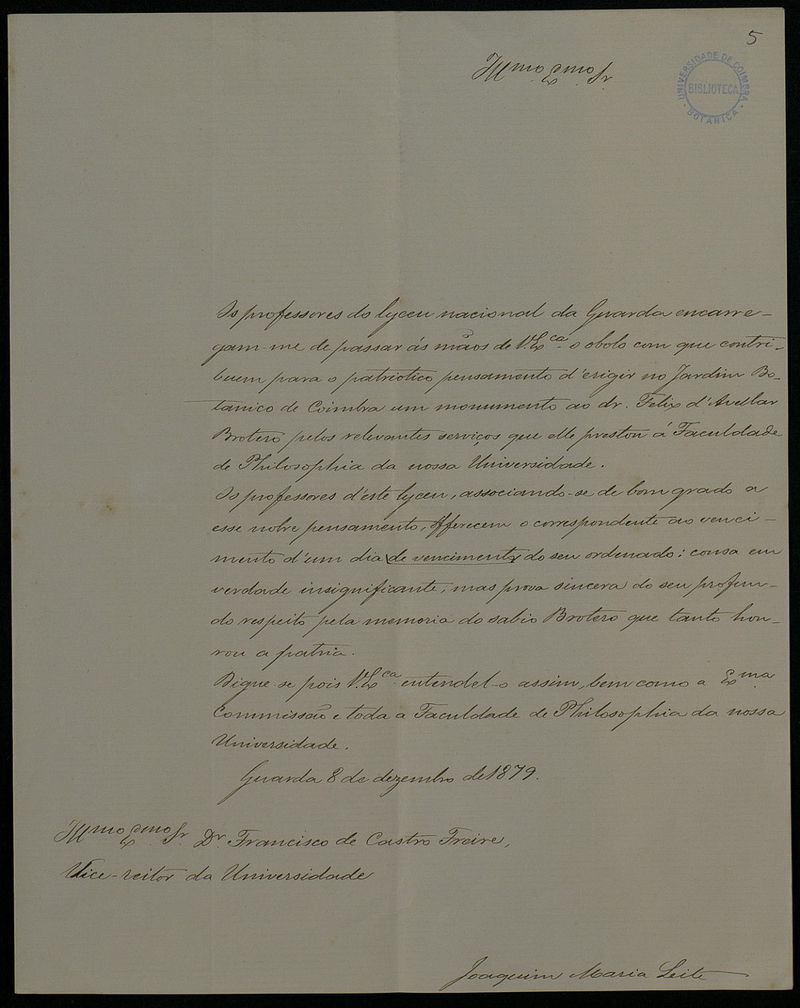 [Carta], 1879 Dez. 8, Guarda, a Júlio Henriques, Coimbra