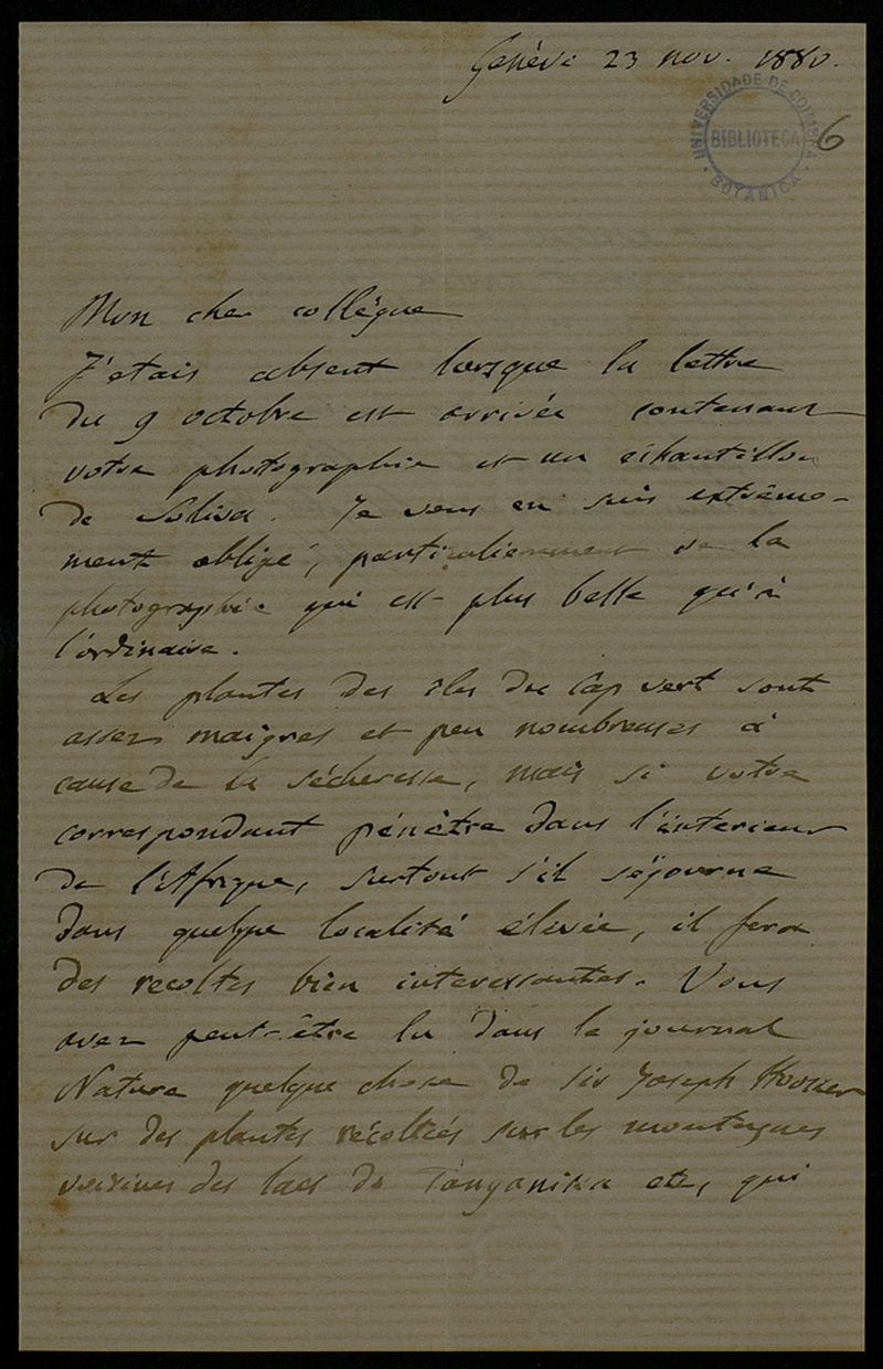 [Lettre], 1880 nov. 23, Genève, [à] Júlio Henriques, Coimbra