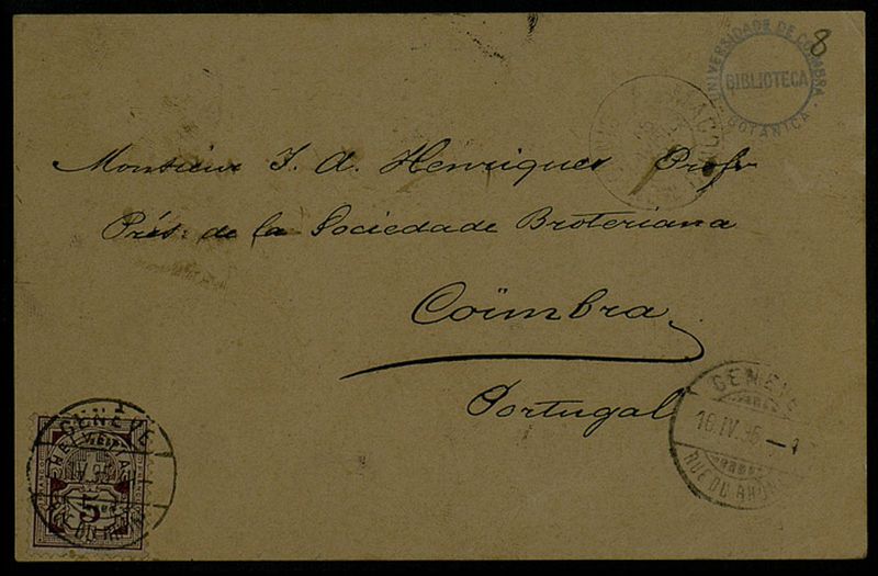 Avis, 1895 avr. 16, Genève, à Júlio Henriques, Coimbra