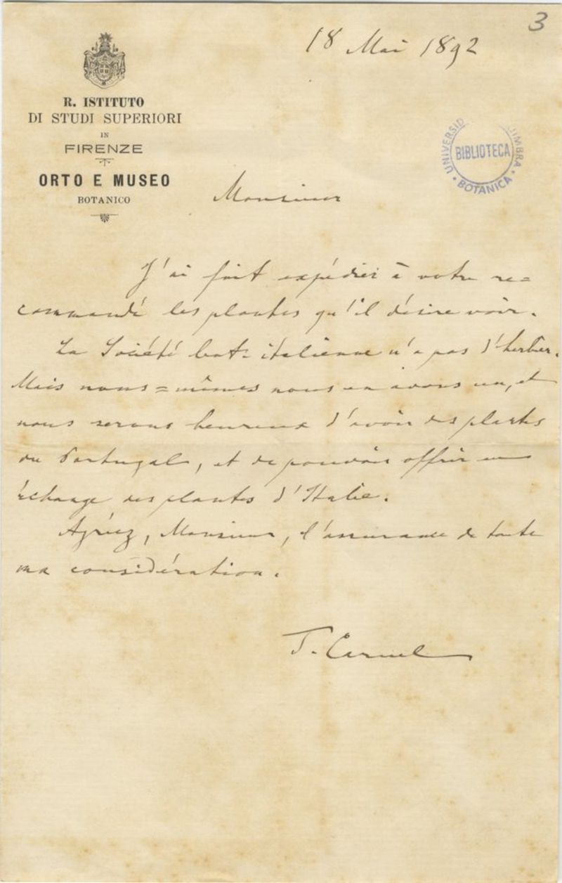 [Lettre], 1892 mai 18, Firenze, [á Júlio Henriques, Coimbra]