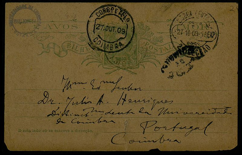Bilhete Postal, 1909 [Set.?, Dilli], a Dr. Júlio A. Henriques, Coimbra