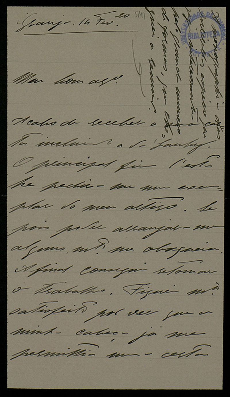 [Carta], 1905 Fev. 14, Granja, [a Júlio Henriques, Coimbra]