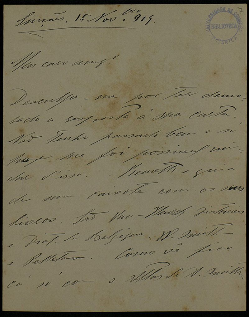 [Carta], 1909 Nov. 15, Sinçães, [a Júlio Henriques, Coimbra]