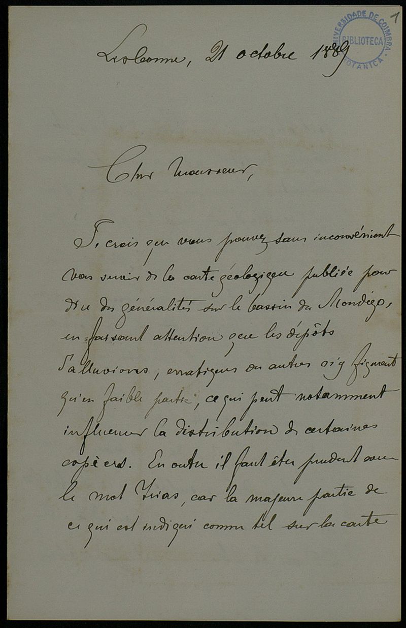 [Carta], 1889 Out. 21, Lisbonne, [a] Júlio Henriques, Coimbra