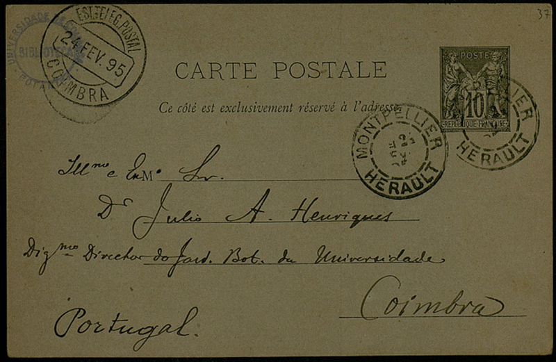 Carte postale, 1905 fév. 21, Montpellier, a Júlio Henriques, Coimbra