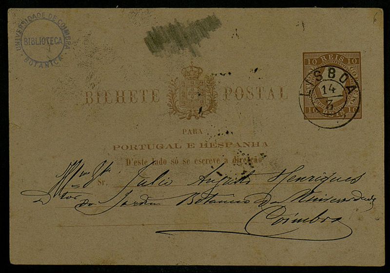 Bilhete postal, 1882 mars 22, Lisboa, a Júlio Henriques, Coimbra