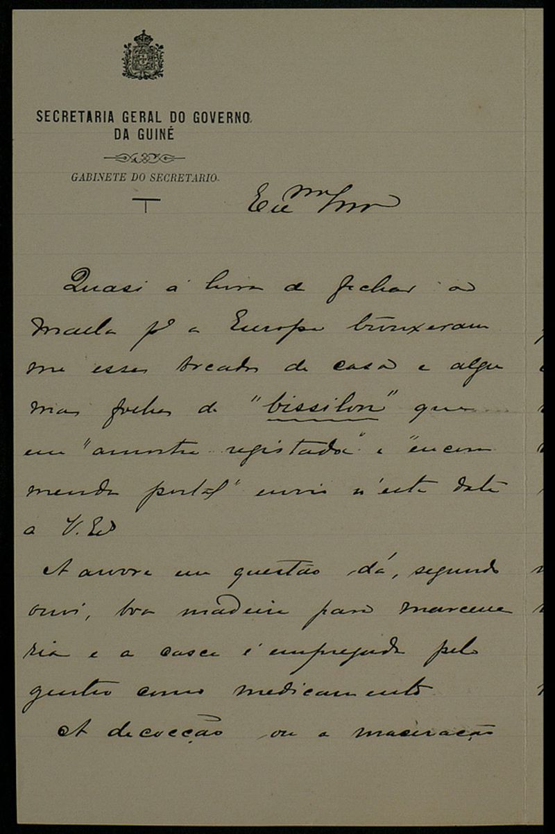 Papel timbrado de: Secretaria Geral do Governo da Guiné - Gabinete do Secretario.