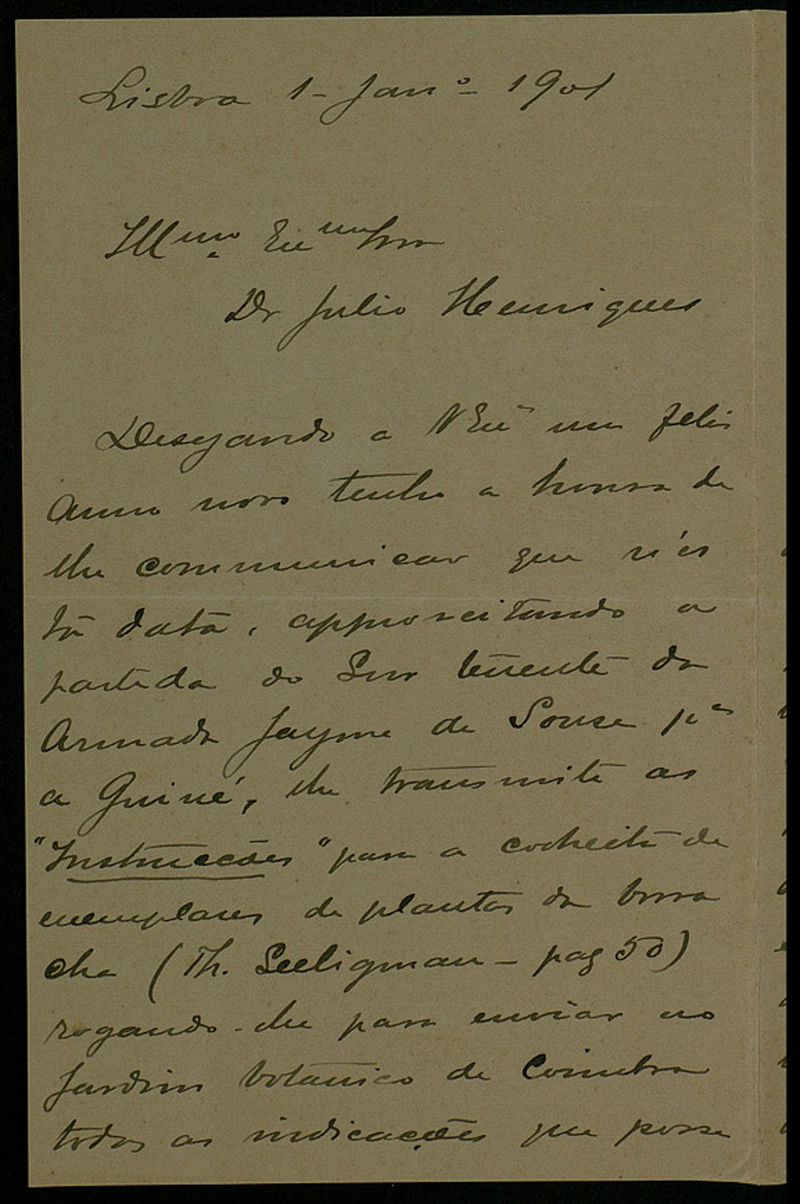 [Carta], 1901 Jan. 1, Lisboa, [a] Dr. Julio Henriques, Coimbra