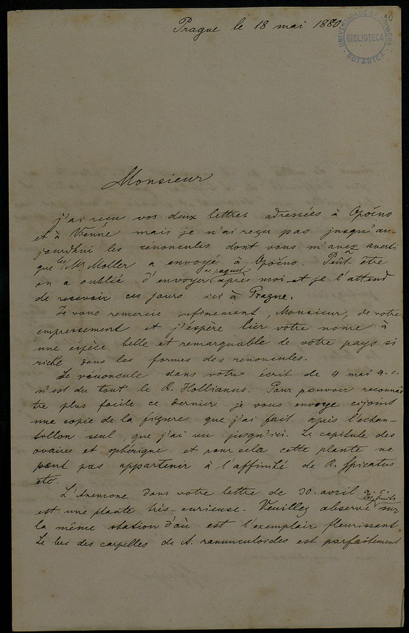 [Lettre], 1880 mai 18, Prague, [à Júlio Henriques, Coimbra]