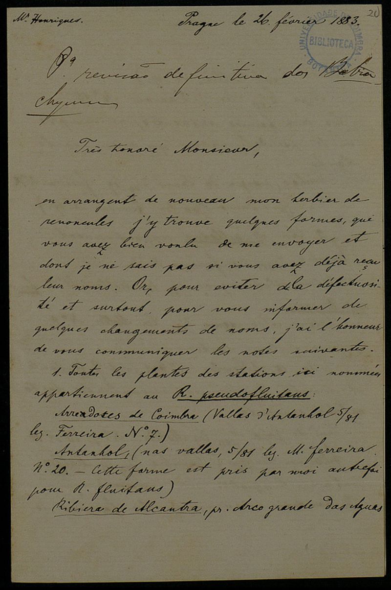 [Lettre], 1883 fév. 26, Prague, [à Júlio Henriques, Coimbra]